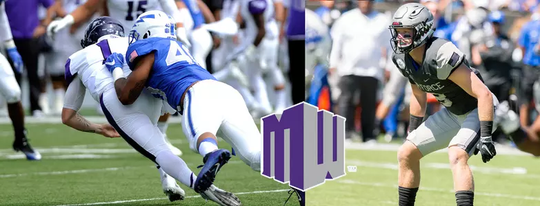 Dunn, Jr., is fourth on the team in tackles with 51 and is second in sacks (5.0) and tackles for loss (10.0). He ranks ninth in the Mountain West in tackles for loss and leads the league with three fumble recoveries. McVey ranks third in the conference and 17th nationally in kickoff returns with a 26.5 average. He became the first Falcon since 2010 to return a kickoff for a touchdown. Sandor and Vail helped power the Air Force offense to 322.8 yards rushing per game which ranks second in the MW and fourth nationally. The Falcons are third in the conference in total offense with a 451.5 per-game average.