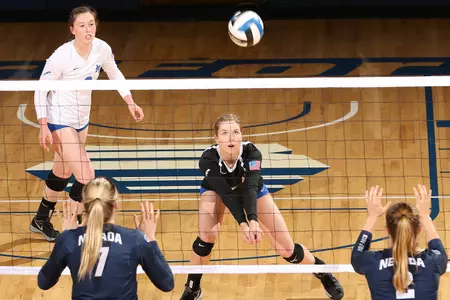 Kills from Pennington and sophomore Abigail Miksch, as well as a Pennington/Heldt block, gave Air Force an early 4-2 lead. San Diego State tied the set at four and the two squads matched the next four scores, before the Aztecs used a 4-0 run to take a 12-8 advantage. Heldt and Ssozi teamed up for a block to stop the run, while Ssozi put down an ace to bring Air Force within two (12-10). Kills from Vanecek (13-11) and Miksch (14-12, 15-13) kept the Falcons within a pair, but the Aztecs rolled off another five points to go ahead 22-14. Pennington teamed up for a block with junior Piper Heineck and Ssozi put down a pair of kills, but San Diego State evened the match with a 25-17 win.
