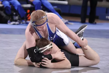 The back-and-forth action continued as junior Dane Robbins returned a 4-1 decision over Raider Lofthouse in the 157 class. Robbins scored an early takedown which led to a long ride. By the end of the second period, Robbins secured a riding time point and tacked on an additional escape point. Robbins was able to fend off the Wolverine's offense in the third period, sealing the deal, 4-2, at the final whistle.