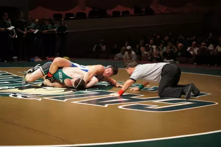 Freshman heavyweight Kerry Powers led the Falcons to a high-note finish with a 2-1 decision over Spencer Empey by way of an escape and riding time point at the final whistle. The win propelled Air Force to a 21-10 final score of the Mustangs.