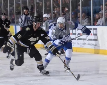 "This was a huge series," head coach Frank Serratore said. "This win enabled us to maintain our position in the standings. It was a gutsy performance by our guys. Shane Starrett was really good. He made some very timely saves. The turning point was the save Shane made on Mansfield's breakaway. That was huge. We were down 1-0 and if that goes in, it could have been a different outcome. We had to overcome some chaos at the end, but I wouldn't expect any different. Give our guys a lot of credit because Army has a good team."