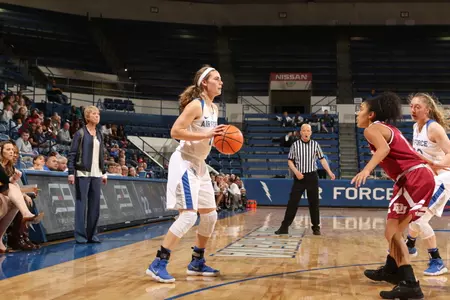 Freshmen Kennedy Beale and Michaela McFalls made their collegiate debuts for the Falcons. Beale logged three minutes and McFalls scored two points in four minutes in reserve.