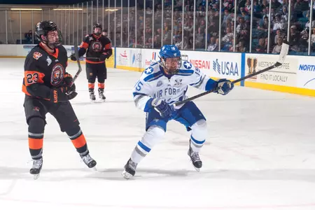 The Falcons (8-9-3) return to conference play with a two-game home series against Mercyhurst, Jan. 5-6, at the Cadet Ice Arena. Friday's game starts at 7:05 pm MT while Saturday's faceoff is at 5:05 pm.