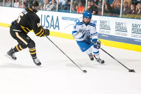"We were on death's door, but we weren't dead," head coach Frank Serratore said. "Give AIC credit, they were a difficult team to play against. Their power play got them the lead and then they played a good defensive game. AIC will soon be a contender in this league. They are well-coached. They have skill and they compete. But proud of our guys. Not many teams can come from three goals down in the final four minutes to get a point. We didn't get too many open looks tonight. But when the chips were down, we found a way to salvage a point."