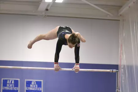 DURHAM, N.H. – The Air Force women's gymnastics team dropped a 196.050-193.125 road decision to No. 23 New Hampshire this evening (Feb. 24) in Durham. Backed by a runner-up finish from freshman Anna Salamone, the Falcons posted a season-high team score of 48.600 on the uneven bars.