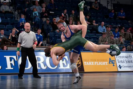 LAST WEEKEND IN LARAMIE, WY: In their final road dual of the season, Air Force dropped a 29-9 loss to Big 12 foe, Wyoming, Saturday evening, in the UniWyo Sports Complex, Laramie, Wyo. The Falcons, who are now 5-5 overall with a 0-3 mark in conference, will complete their final two Big 12 dual matches at home. Dylan Hyder, Jerry McGinty and Anthony McLaughlin added wins to their dual slate at the event.