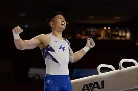 EVERETT, Wash. – Air Force senior Tim Wang captured his third-straight USAG title on the pommel horse this evening (March 25), as members of the ninth-ranked men's gymnastics team competed in the individual event finals of the 2017 USA Gymnastics Collegiate National Championships. By placing within the top-six of their respective events, six Falcons received USAG All-America distinction.