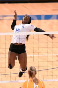 Denise Ssozi recorded the first 20-kill match of her career, as she collected a match-best 23 kills. The sophomore, who hit .263 in the match (23-8-57), combined with junior Abigail Miksch (11) for 35 of the team's 54 kills. Freshman Kathleen Medill led the Falcons with three blocks (one solo, two assisted), while juniors Sarah Hellman and Shanleigh Conlan posted team-leading marks in digs (14) and assists (47). Conlan, freshman Jordan Daniels and senior Piper Heineck rounded out the Falcons' stat leaders, as they each registered a service ace.