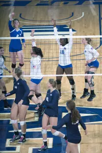 Ssozi added another 17 kills in the nightcap, as she and Heineck (13) combined for 30 kills.The Falcons' lone senior, who hit at team-high clip of .474 (13k-4e-19a), added a season-high six blocks, with one solo and five assisted stops. Conlan accounted for 44 assists, while Hellman recorded 15 digs. As a team, the Falcons combined for 11 service aces. Scoring on three straight serves, Ssozi tied for the match lead with four aces. Freshman Jordan Daniels recorded three aces, while Heineck and Conlan each tallied two.