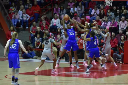 In a game that featured 14 lead changes, the game turned on a four-point play with 5:24 left in regulation. With Air Force nursing a 48-46 lead, New Mexico guard Laneah Bryan was fouled on a made three-point basket. She made the free throw to put New Mexico up for good at 50-48. The Lobos out-scored the Falcons 11-1 the rest of the way out. Air Force is now winless in 21 tries at The Pit.