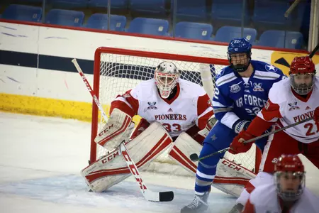 SHU outshot Air Force, 28-24, in the game. SHU was 1-for-3 on the power play while Air Force was 0-for-4. Billy Christopoulos made 26 saves for the Falcons while Brett Magnus made 23 for the Pioneers.
