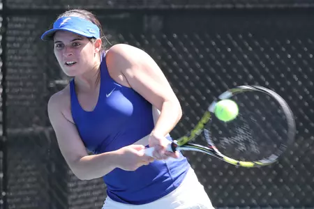 The match ended up coming down to the doubles point as the teams split singles action with three wins apiece. Barnickel, who is 10-2 at the No. 2 position, handled Milka Genkova in straight-sets, 6-2, 6-5. Harvey and Carley Hatcliff battled to wins in the fifth and sixth positions, respectively. Harvey bested Ana Tkachenko in three, 6-3, 1-6, 6-4, while Hatcliff imposed her will on Myiah Scott in straight-sets, 6-4, 6-0.