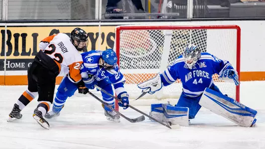 Member of Cadet Squadron 40 ... Parents are Peter and Cheryl Christopoulos ... Has two older brothers ... Father was a college wrestler while his brother played college and minor league baseball … Major is management ... On the dean’s list and athletic’s list every semester ... On the commandant’s list in the spring 1028 for military excellence … This past summer, taught rising sophomores how to shoot the M9 at Expeditionary Survival and Evasion Training … also worked Basic Cadet Training … is the athletic’s officer in his squadron … got to ride in an F-16 while on Operation Air Force at Davis-Monthan AFB, Ariz., in the summer of 2017 … Favorite athlete to follow on social media is Anthony Rizzo … Favorite inspirational follow is Mindset of Greatness … Funniest follow is Barstool sports … if he could have dinner with any three people it would be Walter Payton, Will Ferrell and Ronald Reagan … Best advice he ever received is “Respect all, fear none” … favorite musician is Eric Chruch … favorite possession is the “lucky two dollar bill his dad gave me a long time ago … if he had a walk up song it would be Burn it to the Ground, by Nickelback … On road trips, he never forgets his lucky socks … Long-term goals are to either become a pilot or go to graduate school ... Something not many people know about him is that he can ride a unicycle and juggle at the same time … Greatest moment in sports was earning his first collegiate win over No. 5 Denver in the season opener in 2016 … Greatest team moment was winning the Atlantic Hockey Championship the last two years … Started playing hockey at the age of four ... Wears No. 44 because it’s the same number is dad wore in football and brother wore in baseball ... One word to describe himself is gritty ... Credits his parents and two older brothers as having the greatest influence on his sports career ... Favorite sport other than hockey is baseball … Hobbies are playing golf, reading and hiking … Started playing hockey at the age of four … Favorite NHL team is the Carolina Hurricanes … Favorite NHL player is Montreal Canadians goalie Carey Price.