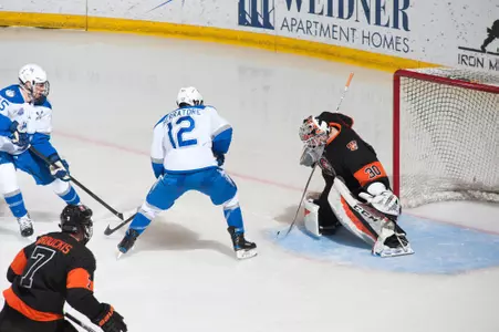 Played in 38 games and was second on the team with 14 goals … Fifth on the team with 22 points … Three power-play goals, two game-winners and one short-handed goal … His +9 was the fifth best on the team … Scored a goal in his first three games and had a point in his five games … Three points in the series at Bemidji State, coached by his father … Scored Air Force’s first goal in the 4-1 loss on Friday and then scored the game-winner in the 5-1 win on Saturday … Two points (1-1-2), including the game-winner, in the win at Niagara, Jan. 27 … Tied his career high of two goals in the 7-4 win over Canisius, Feb. 16 … Two points (1-1-2) in the AHC Final Four, including a goal in the win over Canisius in the semifinals … Two assists in the win over No. 1 St. Cloud State in the NCAA West Regional ) … Named to academic all-conference team.