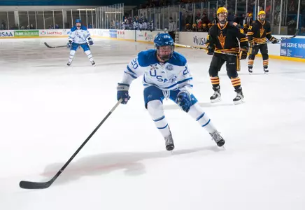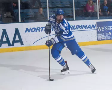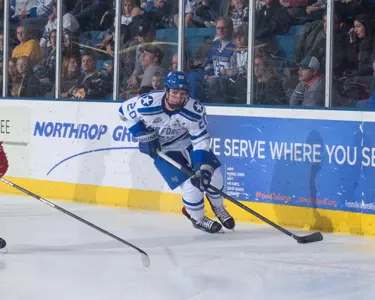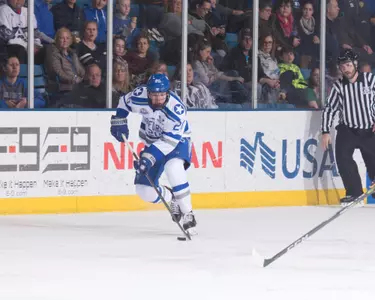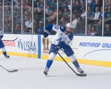 Played in 38 games and had one goal and six assists … Had 27 shots on goals, was a +4 and had 25 blocked shots … Due to a number of injuries, played both defense and center throughout the season … Scored the only goal in the 1-1 overtime tie at Alaska-Fairbanks in the second game of the season … Season high two assists in the 4-2 win at Niagara, Jan. 26 … Played forward in 16 of the final 17 games and had five of his seven points on the season during that stretch … Academic all-conference selection.