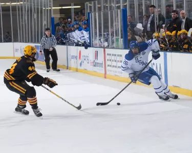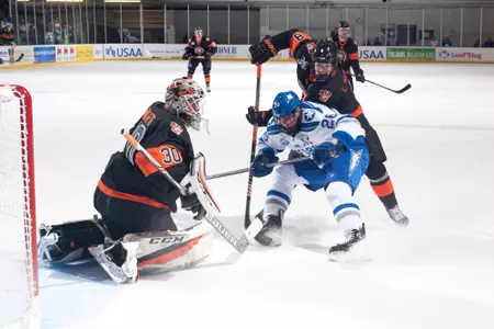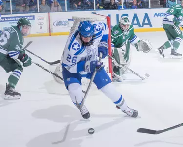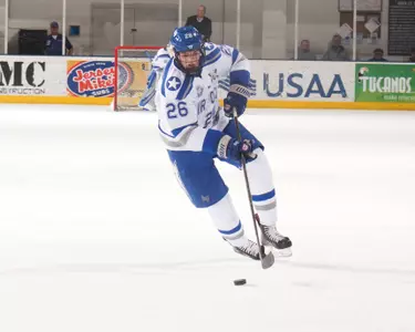 Played in 14 games and had one goal and two assists … Was a +4 … First career point was an assist against Mercyhurst (Jan. 6) … First career goal came against Bentley (Feb. 4).