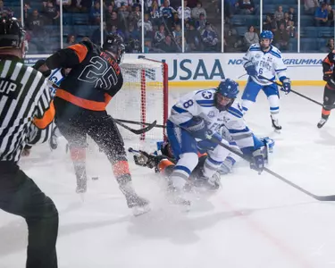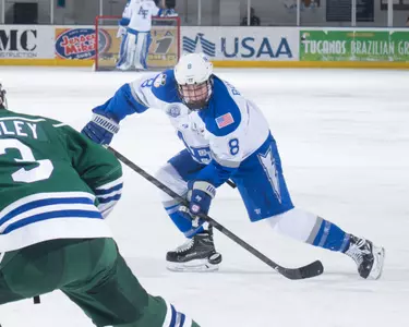 2017-18 (Freshman): Played in 30 games and had eight goals and an assist … Was a +5 and had one game-winner … Missed the final five games due to an injury … Career-best two goals in the win over RIT, Jan. 13 … Scored seven of his eight goals in a span of 14 games in the second half of the season … Scored the game-winner in the 5-3 win over Army in game one of the AHC Quarterfinals … Scored early in the third period for a 4-2 lead.